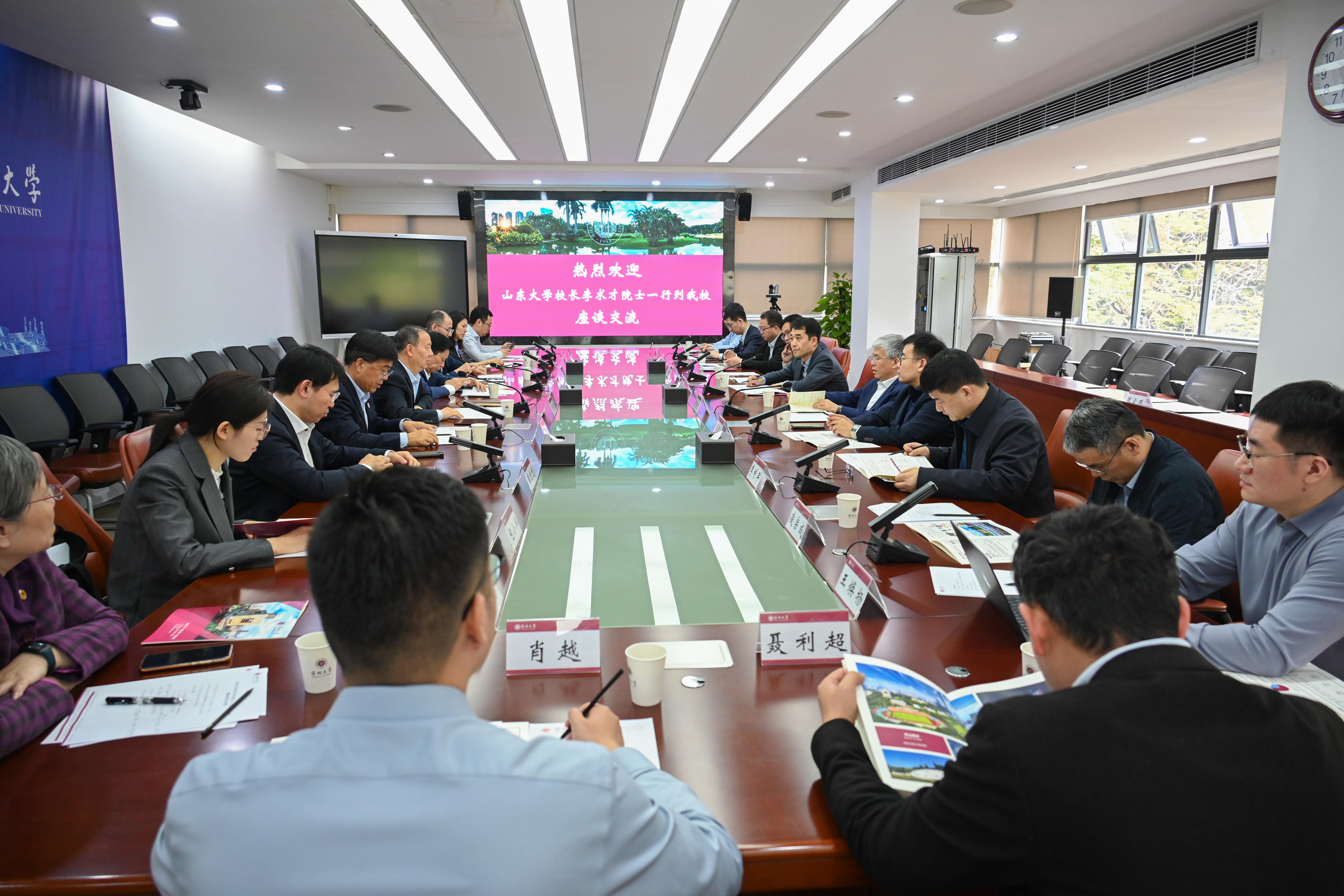 3月11日上午,山東大學校長、中國工程院院士李術才,黨委常委、副校長易凡一行來到深圳大學調研交流;深圳大學校長、中國科學院院士毛軍發,中國工程院院士、深地科學與綠色能源研究院院長謝和平,副校長汪永成會見來賓。雙方在粵海校區匯元樓201會議室舉行座談。汪永成主持座談會。
