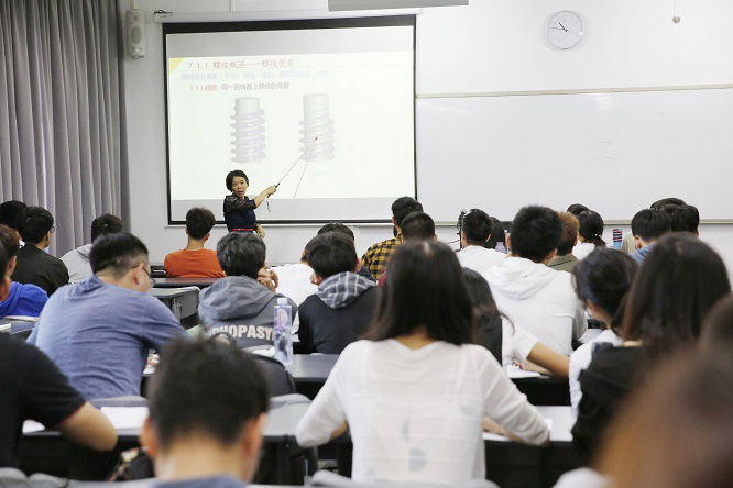11月24日上午,在滄海校區(qū)理工樓,程蓉老師帶來了第二節(jié)觀摩課《工程制圖》。在課程導(dǎo)入環(huán)節(jié),程老師首先對比了標(biāo)準(zhǔn)件和常用件的特點(diǎn);其次,采用了問題導(dǎo)入法,引入兩個案例進(jìn)行更深層次的學(xué)習(xí),并且通過生活事件的舉例,指出專業(yè)知識與人類生活緊密相聯(lián)的關(guān)系,向?qū)W生展示了學(xué)科的重要性和必要性。緊接著,程老師點(diǎn)出了本節(jié)課的重點(diǎn)內(nèi)容——“螺紋”。在講授中,程老師拿出教具模型給學(xué)生演示,具體而形象。同時,她及時提醒學(xué)生易錯之處、易忽略之處,幫助學(xué)生更好地掌握知識。程老師精神飽滿、聲音洪亮,熱情洋溢,語言生動而精煉,PPT圖文并茂,引人入勝。整堂課方法多樣、環(huán)節(jié)緊湊,重難點(diǎn)突出、設(shè)計合理,對青年教師具有很強(qiáng)的學(xué)習(xí)指導(dǎo)意義。