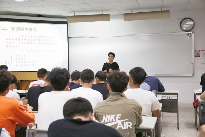 11月24日下午,第四節(jié)觀摩課是由劉艷紅老師主講的《導(dǎo)游業(yè)務(wù)》,本節(jié)授課內(nèi)容為:旅游危機(jī)管理——導(dǎo)游突發(fā)事件的處理與預(yù)防。劉老師在上課伊始,與青年同行教師們悉心分享自己做教師的心得:做教師的使命是希望學(xué)生比我們更優(yōu)秀。隨后,劉老師積極調(diào)動課堂上同學(xué)們的積極性,先和大家回顧了21世紀(jì)的自然災(zāi)害,同學(xué)們積極回應(yīng),熱情開朗,活力四射,氣氛非常活躍。之后講解了旅游突發(fā)事件的處理方法,同學(xué)們和劉老師互動頻繁,課堂教學(xué)幽默風(fēng)趣,富有生活意味。劉老師以自己親身在馬爾代夫的導(dǎo)游經(jīng)歷,將自身豐富的導(dǎo)游經(jīng)驗和專業(yè)的知識講述給大家。整堂課程劉老師娓娓道來,充滿熱情。學(xué)生與老師積極配合,在座的青年教師也都參與到了互動中,不僅收獲了知識,更收獲了教學(xué)方法與教學(xué)心得。