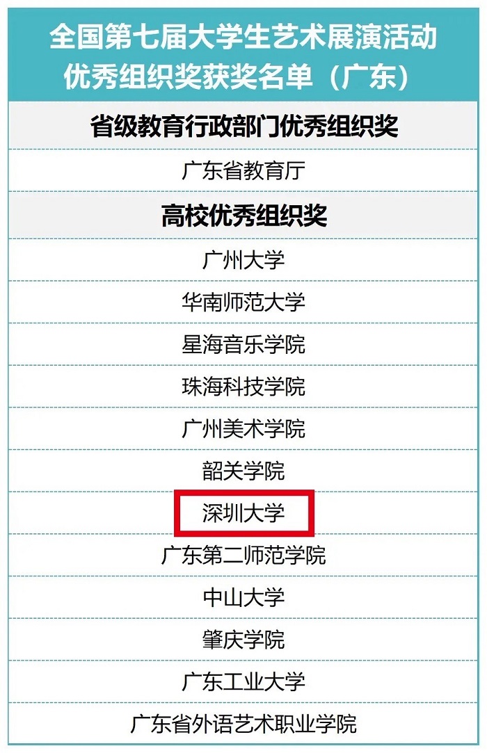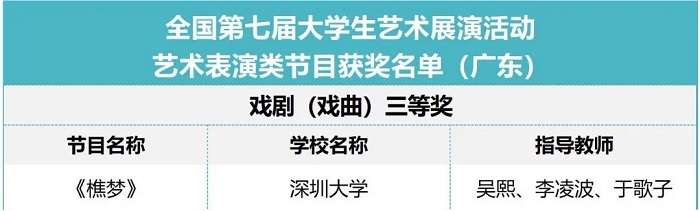 深圳大學(xué)在“全國(guó)第七屆大學(xué)生藝術(shù)展演活動(dòng)”中喜獲佳績(jī)