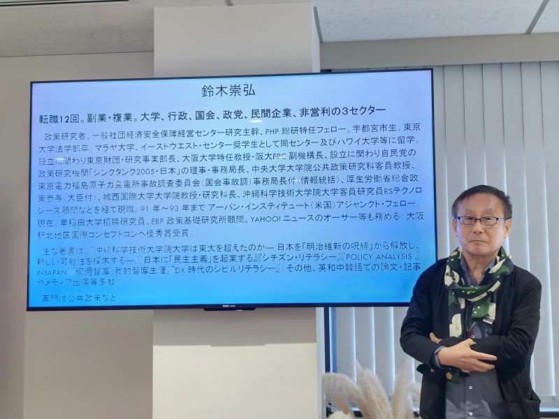 為幫助MPA學生更好了解日本公共治理,MPA中心主任高梁老師邀請了尚美學園大學教授田中啓太,城西國際大學大學院國際公共管理研究科科長、中央大學大學院公共政策研究科特邀教授鈴木崇弘先生為研學團授課。田中啓太教授和鈴木崇弘教授同樣以日本經濟發展為切入點,從不同視角展開講述。
