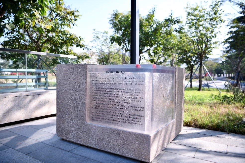 和弦橋:和弦,音色飽滿,圓潤。猶如滿月,月相團圓。寓意夢想開花、愿景如意。上弦、下弦、和弦,三橋并架,象征跨順境,越逆境,達勝境。又,弦,弓弦。喻及橋梁:橋拱如弓,橋直如弦。又,弦,琴弦。關乎教育:誦讀探義,弦歌和心。