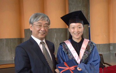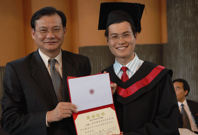 章必功校長(zhǎng)為全校碩士畢業(yè)生一一頒發(fā)畢業(yè)證和學(xué)位證書(shū)。