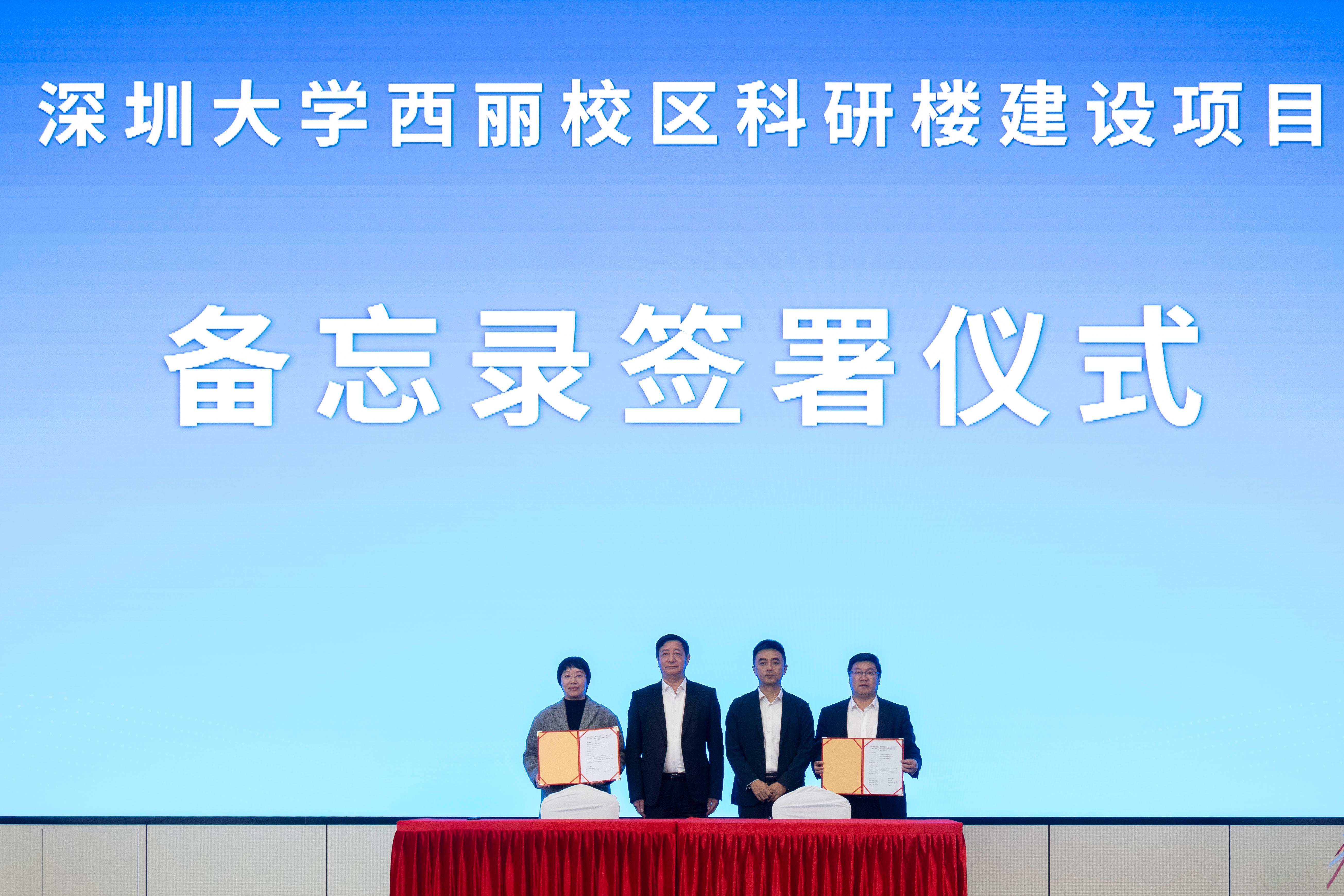 會上,深圳大學與深圳市建筑工務署簽署關于深圳大學西麗校區科研樓建設項目移交的備忘錄,隨后進行項目鑰匙的移交儀式。項目正式交接后,深圳大學、深圳市建筑工務署、設計單位、全咨單位、施工總承包單位相關負責人員合影留念。