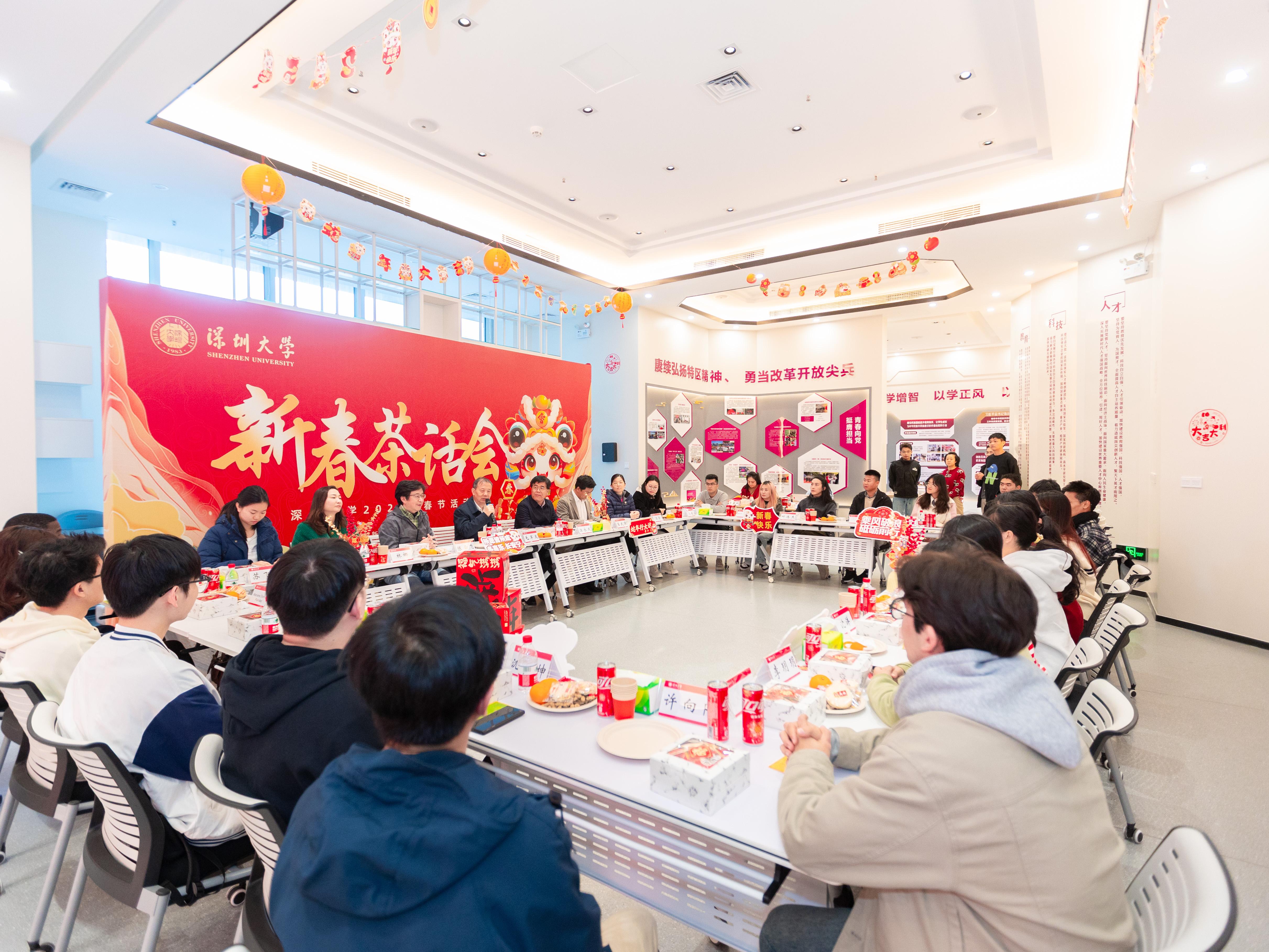 1月27日,在2025乙巳蛇年春節來臨之際,深圳大學留校學生春節茶話會在粵海校區紫薇齋106室、麗湖校區守正樓A213室同時舉辦,校長毛軍發、副校長汪永成出席粵海校區茶話會,副校長李永華出席麗湖校區茶話會,與各學院留校學生代表們共聚一堂,聊收獲、說目標、話家常,共同為即將到來的蛇年新春寄予美好祝福。黨政辦公室、黨委組織統戰部、校團委、黨委學生工作部、麗湖校區管理辦及各學院相關負責人參加茶話會。