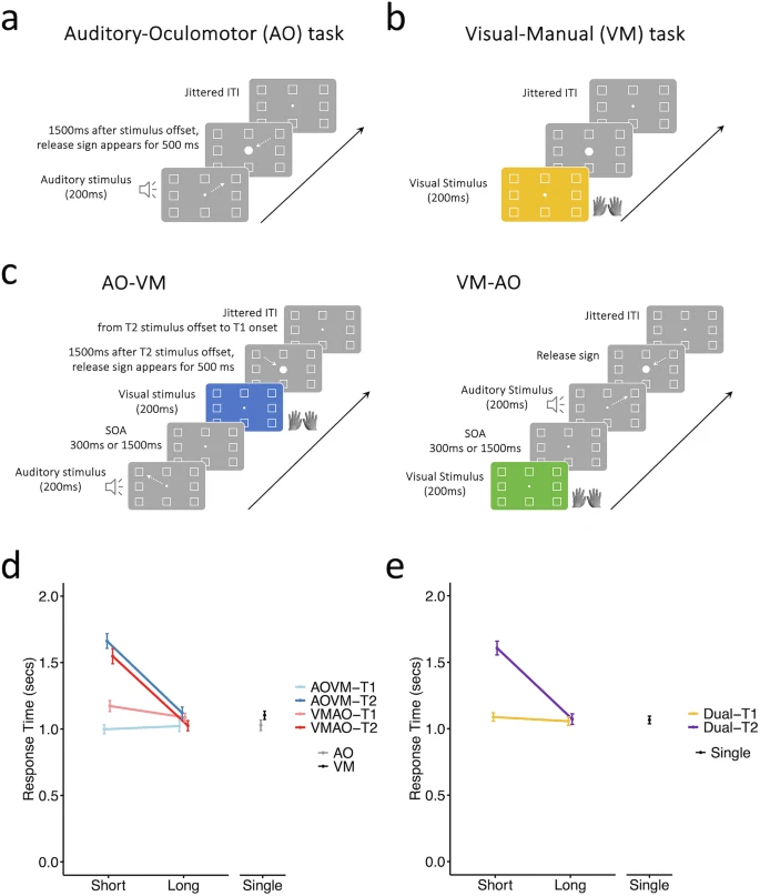 近日,深圳大學心理學院助理教授樂秋海與合作者在自然指數期刊Nature Communications(2023 Impact Factor=14.7)在線發表了題為“Ultrafast fMRI reveals serial queuing of information processing during multitasking in the human brain”的研究論文。該研究使用超高速、高場強功能磁共振成像技術,發現人類大腦額頂多重需求網絡與運動皮層,共同構成了限制我們進行多任務加工的人腦信息加工序列瓶頸。樂秋海為論文第一作者,深圳大學為第一完成單位。樂秋海與范德堡大學(Vanderbilt University)教授René Marois為共同通訊作者。