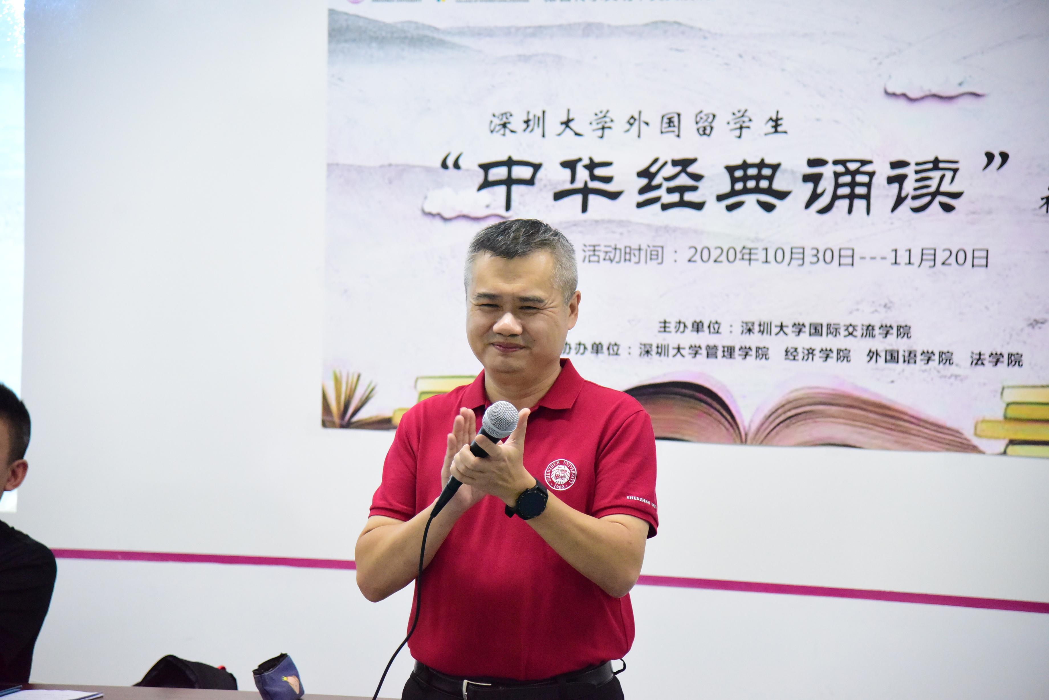 黃雪峰表示,本次經典誦讀大賽意義重大,不僅是國際交流學院開展線上教學活動的一次有益嘗試,也是對教學成果的展示和檢驗,同時,這也是落實《深圳大學文化創新發展綱要》的一項重要舉措。